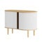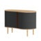 Skapet fås i eik, mørk eik og svart eik, og persiennedørene tilbys i fire nøye utvalgte farger i vårt 100 % resirkulerte Horizons-tekstiler samt i to varianter av kunstlær. Takket være at dørene er utskiftbare, kan du enkelt forny møbelets utseende uten å måtte investere i et helt nytt skap.