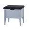Klinte benk med oppbevaring fra Torkelson. Toppen/lokket er kledd med avtagbart trekk i grått ullstoff.