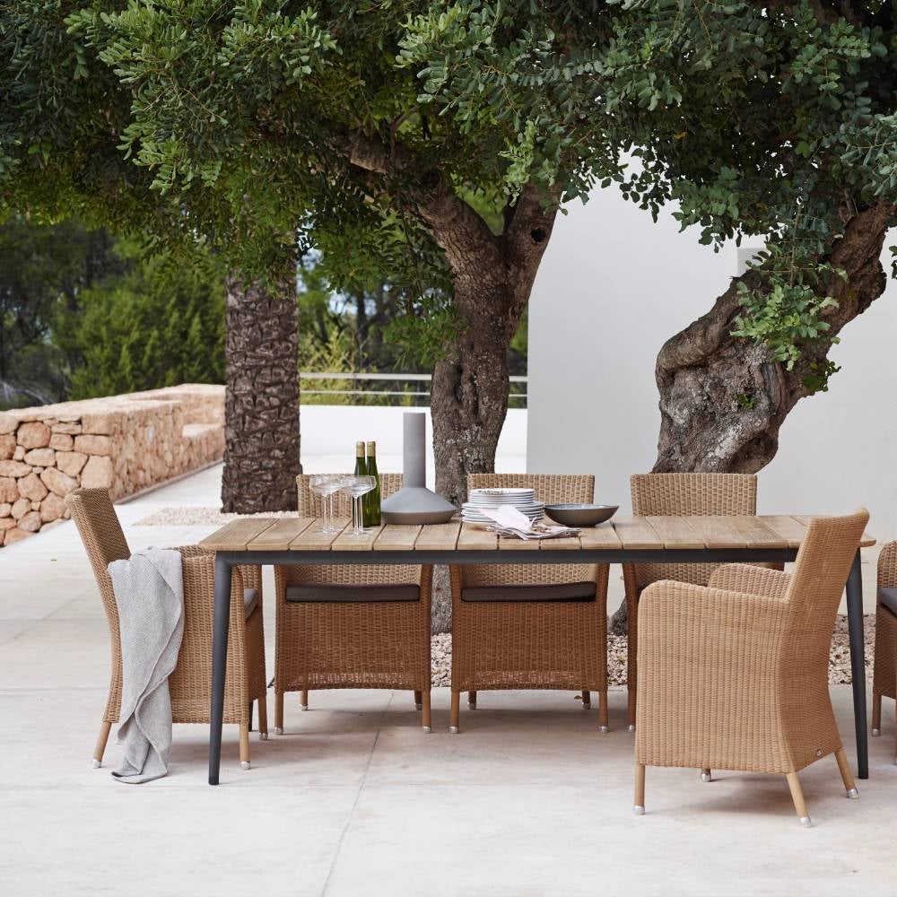 Opplev skandinavisk design som kombinerer tidløs eleganse, enestående komfort og funksjonalitet for både utendørs og innendørs miljøer. Cane-Line-møbler er nøye designet med værbestandige materialer og innovative detaljer som gjør livet behagelig sesong etter sesong. Enten du slapper av under epletreet, samles rundt spisebordet eller nyter lange sommerkvelder på terrassen. Cane-Line forbedrer utemiljøet ditt med stil, kvalitet og komfort som du vil beholde år etter år.