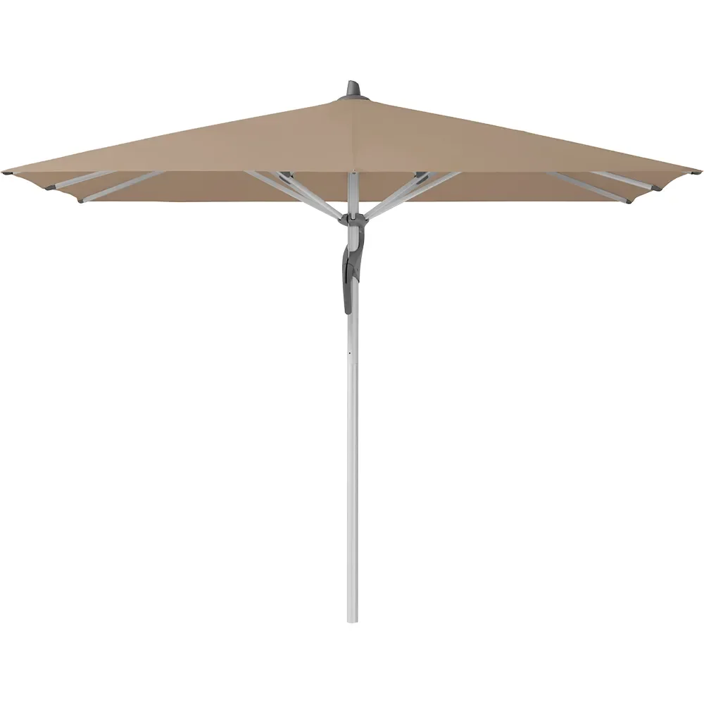 Glatz har parasoller i alle farger og former. Det finnes runde, firkantede, rektangulære og fritthengende parasoller til både den mindre balkongen og den større virksomheten. Kanskje du vil ha skygge over spiseplassen? Eller over loungeområdet? Eller kanskje over solsengene ved bassengområdet? Kanskje du vil ha en parasoll med treramme for en varmere og mer koselig følelse? Uansett hva du trenger av parasoll, finner du det hos Glatz.