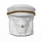 Den sjarmerende skulpturen, som ligner en "sjimpanseoffiser", er håndmalt i hvit terrakottamaling og har fine detaljer som den snodde gullsnoren i lokket og messingknappene som holder platen på plass. Den elegante detaljen avsluttes med en hjørnetann i messing.