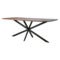 Bordplaten, som er laget av vakkert treverk, tilfører en varm og naturlig touch som harmonerer med det industrielle understellet.