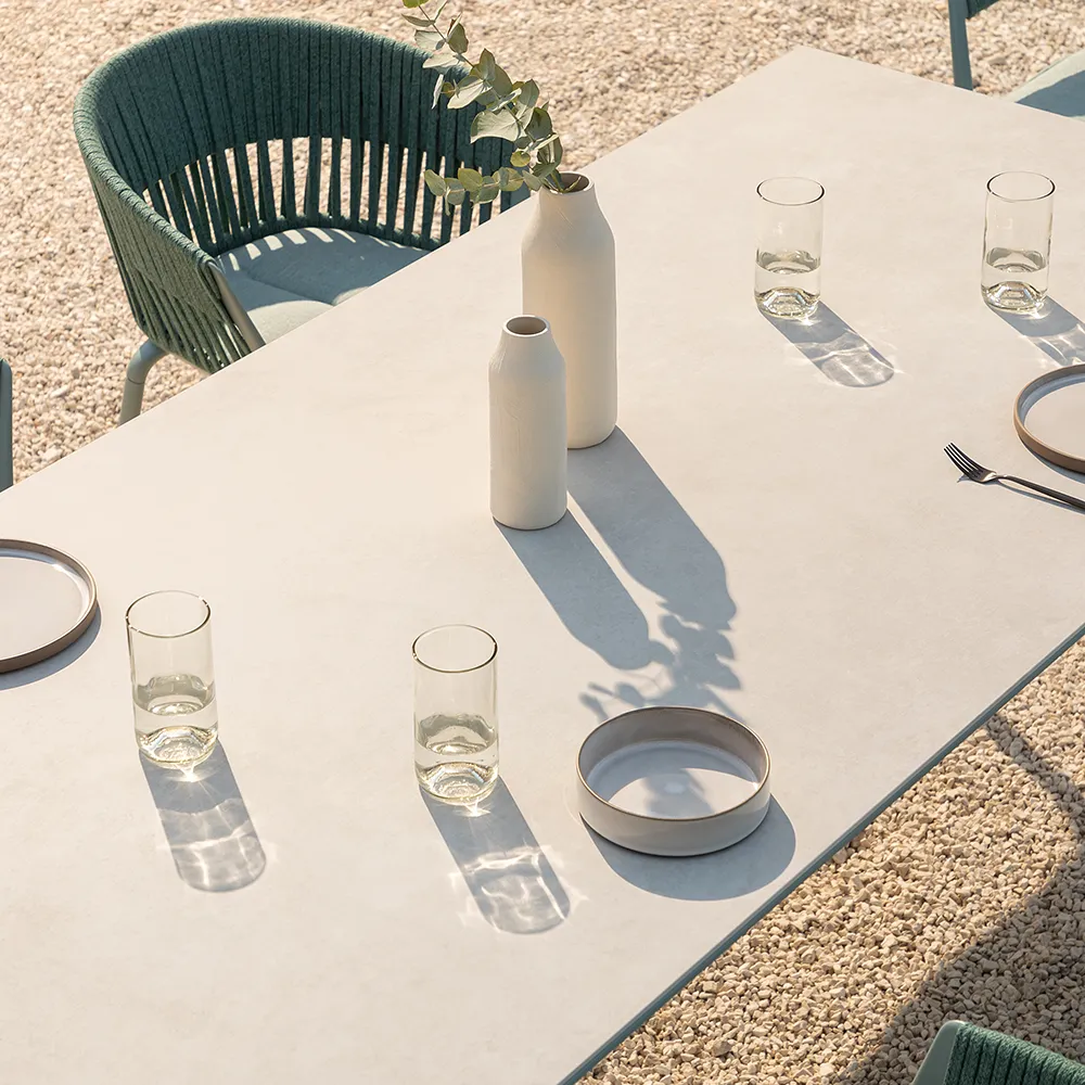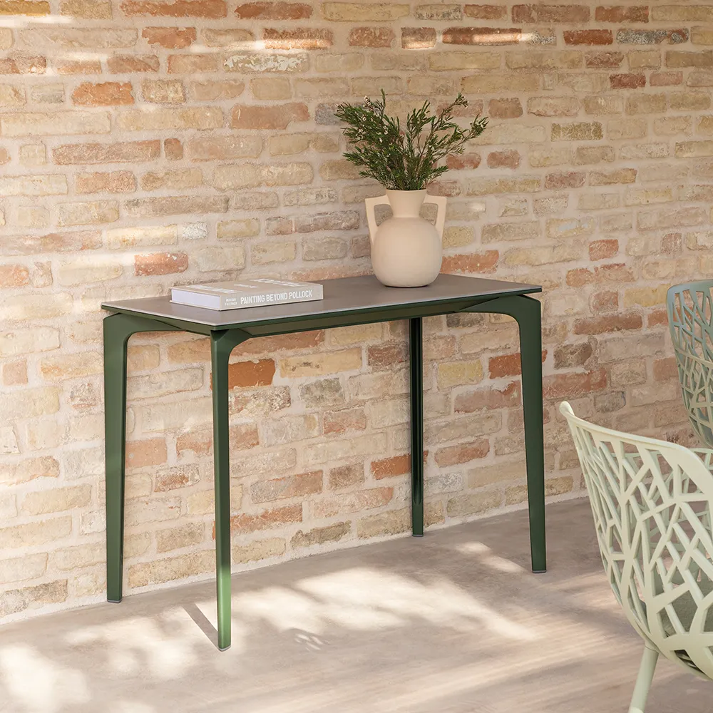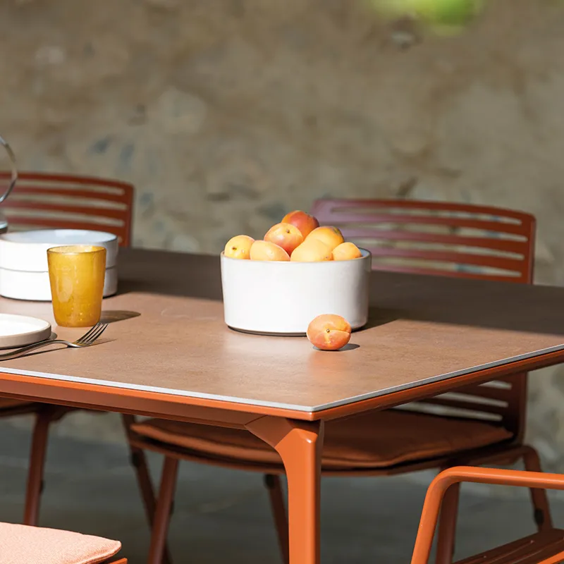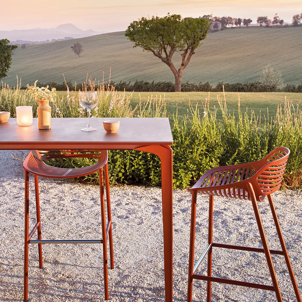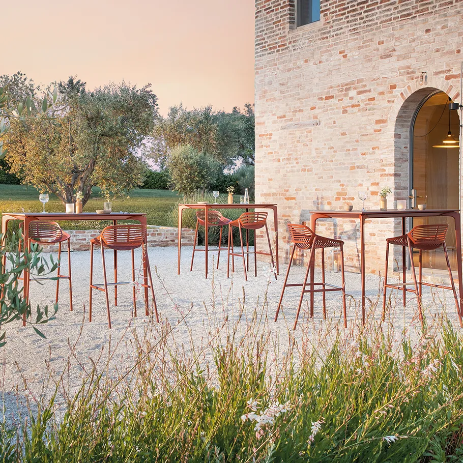 En serie med bord for ute- og innemiljø. Bordene produseres i en rekke størrelser og farger.