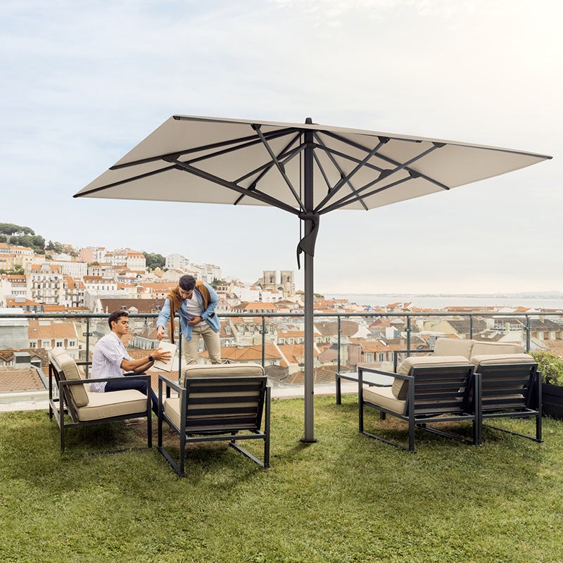 Den gigantiske parasollen Castello Pro er ideell for utendørsområder på restauranter, i parker og på lekeplasser. Enkel eleganse og høy vindstabilitet opp til 100 km/t.