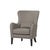 Det nøytrale, vevde stoffet i en varm grå tone gjør lenestolen enkel å kombinere med forskjellige interiørstiler – fra moderne minimalisme til tradisjonell eleganse. Mørkbeisede treben gir en stabil base og forsterker det klassiske utseendet.