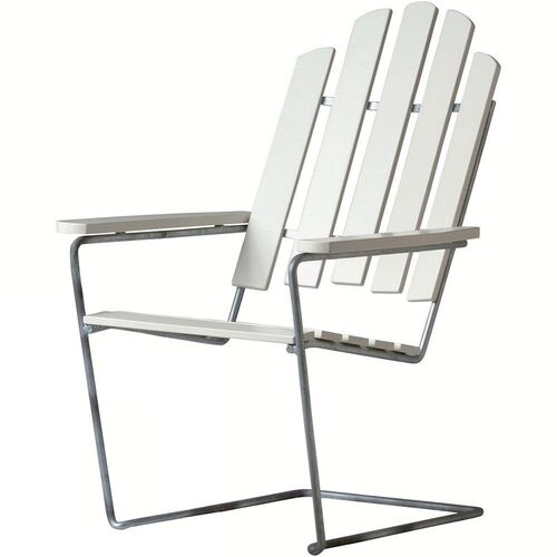 Solstol A3 hvitlakkert eik/varmforsinket Stativ Grythyttan Stålmöbler