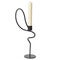 Som frosset i et øyeblikk av dans fanger Valse-lysestaken bevegelsen og elegansen i valsens grasiøse trinn. Lysestaken er laget av pulverlakkert jern og har en mykt bølgende silhuett som gir den et flytende, nesten poetisk uttrykk. Den buede metallstangen fungerer både som et designelement og et praktisk håndtak, noe som gjør det enkelt å flytte lysestaken dit du måtte ønske.